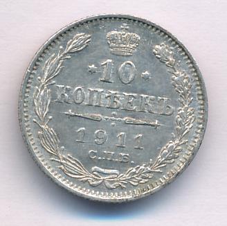 Лицевая сторона — гербовый орел, оборотная —обозначение номинала (10 копеекъ), окруженное венком из лавровой и дубовой ветвей и дата.