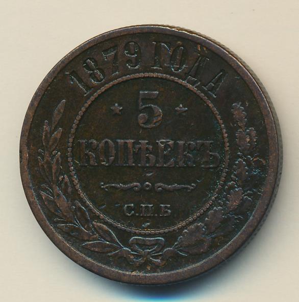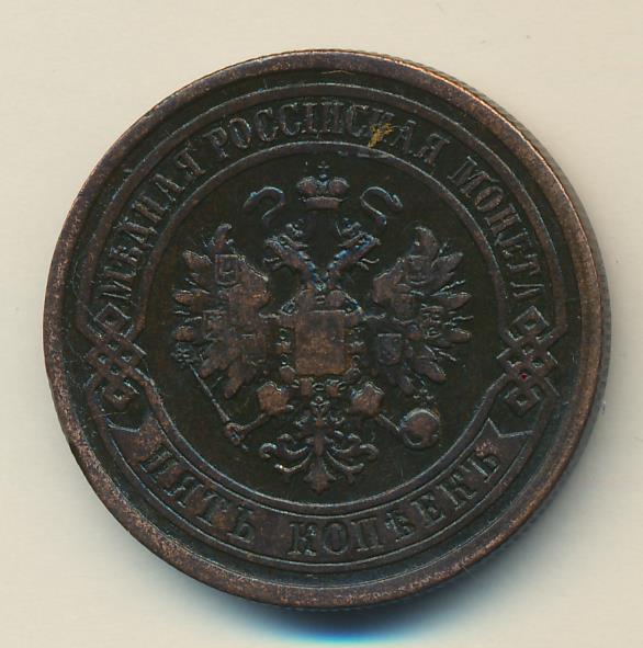 Лицевая сторона — двуглавый орел, надпись МЕДНАЯ РОССIЙСКАЯ МОНЕТА и обозначение номинала (пять копеекъ); оборотная — обозначение номинала (5 копеекъ) в бусовом ободке и дата. Нормативный вес — 16,38 грамма, гурт рубчатый.