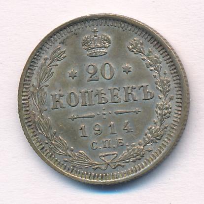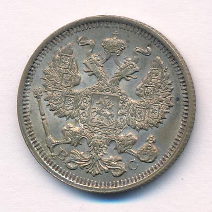 Лицевая сторона — гербовый орел, оборотная —обозначение номинала (20 копеекъ), окруженное венком из лавровой и дубовой ветвей и дата.
