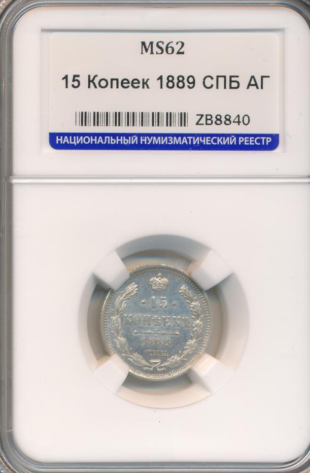 Лицевая сторона — гербовый орел, оборотная —обозначение номинала (15 копеекъ), окруженное венком из лавровой и дубовой ветвей и дата.