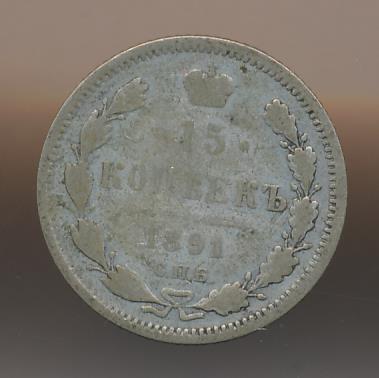 Лицевая сторона — гербовый орел, оборотная —обозначение номинала (15 копеекъ), окруженное венком из лавровой и дубовой ветвей и дата.