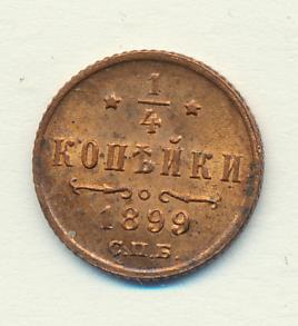 Лицевая сторона — вензель Александра II в венке из лавровой и дубовой ветвей; оборотная — обозначение номинала (1/4 копейки) и дата. Нормативный вес — 0,82 грамма, гурт рубчатый.