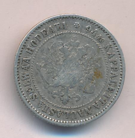 Лицевая сторона — российский двуглавый орел с гербом Великого княжества Финляндского на груди в кольцевой надписи с указанием количества штук (94,48) из фунта сплава серебра, оборотная — номинал и дата в венке из дубовых листьев. Проба — 868, нормативный вес — 5,18 грамма, гурт рубчатый.