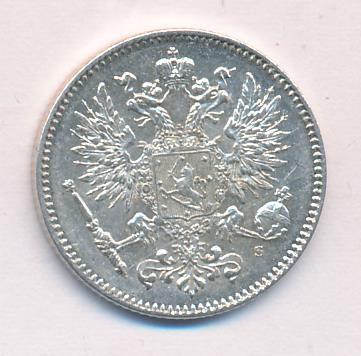 Лицевая сторона — российский двуглавый орел с гербом Великого княжества Финляндского на груди, оборотная — номинал и дата в венке из дубовых листьев. Проба — 750, нормативный вес — 2,55 грамма, гурт рубчатый.
