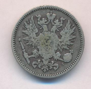 Лицевая сторона — российский двуглавый орел с гербом Великого княжества Финляндского на груди, оборотная — номинал и дата в венке из дубовых листьев. Проба — 750, нормативный вес — 2,55 грамма, гурт рубчатый.