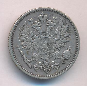 Лицевая сторона — российский двуглавый орел с гербом Великого княжества Финляндского на груди, оборотная — номинал и дата в венке из дубовых листьев. Проба — 750, нормативный вес — 2,55 грамма, гурт рубчатый.