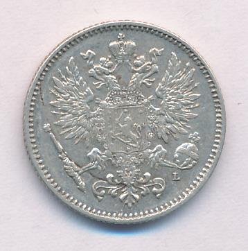 Лицевая сторона — российский двуглавый орел с гербом Великого княжества Финляндского на груди, оборотная — номинал и дата в венке из дубовых листьев. Проба — 750, нормативный вес — 2,55 грамма, гурт рубчатый.