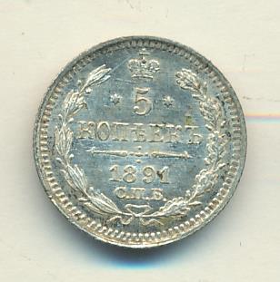 Лицевая сторона — гербовый орел, оборотная —обозначение номинала (5 копеекъ), окруженное венком из лавровой и дубовой ветвей и дата.