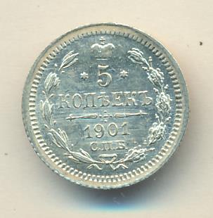 Лицевая сторона — гербовый орел, оборотная —обозначение номинала (5 копеекъ), окруженное венком из лавровой и дубовой ветвей и дата.