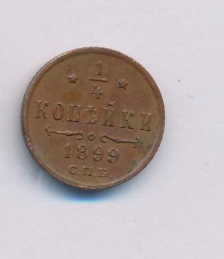 Лицевая сторона — вензель Александра II в венке из лавровой и дубовой ветвей; оборотная — обозначение номинала (1/4 копейки) и дата. Нормативный вес — 0,82 грамма, гурт рубчатый.