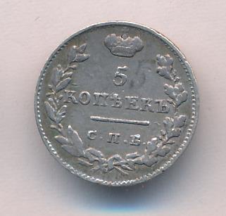 Лицевая сторона - двуглавый орел и дата, оборотная — обозначение номинала (5 копеекъ) в венке из лавровой и дубовой ветвей. Проба до 1813 года — 750, нормативный вес — 1,2 грамма; после 1813 года — проба 868, нормативный вес — 1,04 грамма.