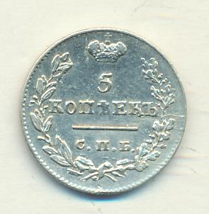 Лицевая сторона - двуглавый орел и дата, оборотная — обозначение номинала (5 копеекъ) в венке из лавровой и дубовой ветвей. Проба до 1813 года — 750, нормативный вес — 1,2 грамма; после 1813 года — проба 868, нормативный вес — 1,04 грамма.