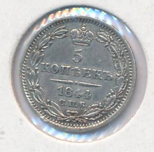 Лицевая сторона — новый гербовый орел с поднятыми крыльями, оборотная —обозначение номинала (5 копеекъ), окруженное венком из лавровой и дубовой ветвей и дата. Проба — 868, нормативный вес — 1,04 грамма.