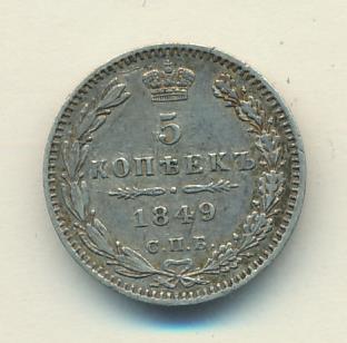 Лицевая сторона — новый гербовый орел с поднятыми крыльями, оборотная —обозначение номинала (5 копеекъ), окруженное венком из лавровой и дубовой ветвей и дата. Проба — 868, нормативный вес — 1,04 грамма.