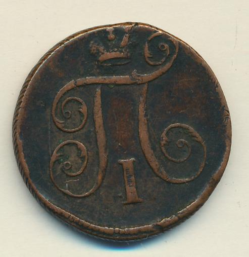 Лицевая сторона — вензель Павла I под короной, оборотная — номинал (1 копейка) и дата. Нормативный вес — 10,24 грамма, гурт — шнур.