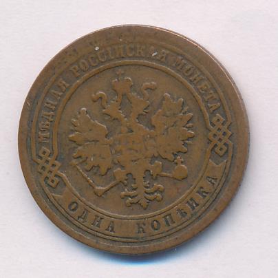 Лицевая сторона — двуглавый орел, надпись МЕДНАЯ РОССIЙСКАЯ МОНЕТА и обозначение номинала (одна копейка); оборотная — обозначение номинала (1 копейка) в бусовом ободке и дата. Нормативный вес — 3,28 грамма, гурт рубчатый.