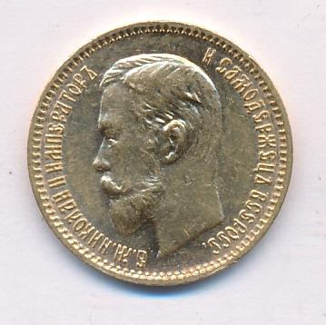 Лицевая сторона — портрет Николая II и надпись «Б.М. НИКОЛАЙ II ИМПЕРАТОРЪ И САМОДЕРЖЕЦЪ ВСЕРОСС»», оборотная — двуглавый орел, обозначение номинала (5 рублей) и дата.