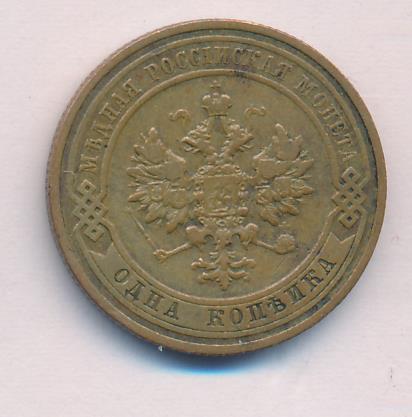Лицевая сторона — двуглавый орел, надпись МЕДНАЯ РОССIЙСКАЯ МОНЕТА и обозначение номинала (одна копейка); оборотная — обозначение номинала (1 копейка) в бусовом ободке и дата. Нормативный вес — 3,28 грамма, гурт рубчатый.
