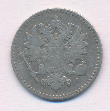 Лицевая сторона — российский двуглавый орел с гербом Великого княжества Финляндского на груди, оборотная — номинал и дата в венке из дубовых листьев. Проба — 750, нормативный вес — 2,55 грамма, гурт рубчатый.