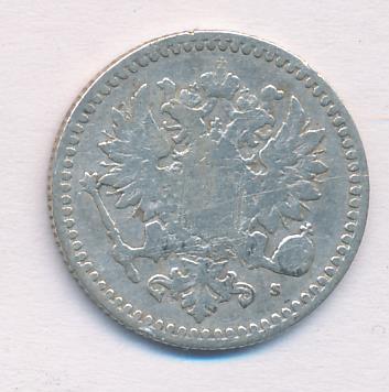 Лицевая сторона — российский двуглавый орел с гербом Великого княжества Финляндского на груди, оборотная — номинал и дата в венке из дубовых листьев. Проба — 750, нормативный вес — 2,55 грамма, гурт рубчатый.