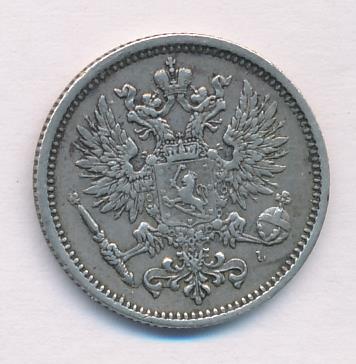 Лицевая сторона — российский двуглавый орел с гербом Великого княжества Финляндского на груди, оборотная — номинал и дата в венке из дубовых листьев. Проба — 750, нормативный вес — 2,55 грамма, гурт рубчатый.