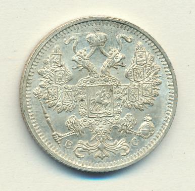 Лицевая сторона — гербовый орел, оборотная —обозначение номинала (15 копеекъ), окруженное венком из лавровой и дубовой ветвей и дата.