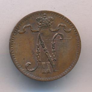 Лицевая сторона — вензель Александра II, оборотная — номинал (1 PENNIA) и дата. Нормативный вес — 1,28 грамма, гурт гладкий.