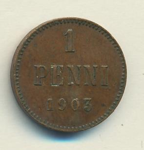 Лицевая сторона — вензель Александра II, оборотная — номинал (1 PENNIA) и дата. Нормативный вес — 1,28 грамма, гурт гладкий.