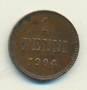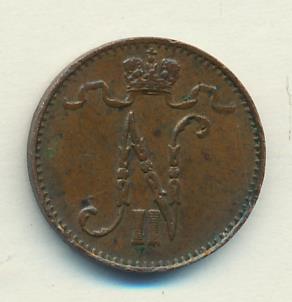 Лицевая сторона — вензель Александра II, оборотная — номинал (1 PENNIA) и дата. Нормативный вес — 1,28 грамма, гурт гладкий.