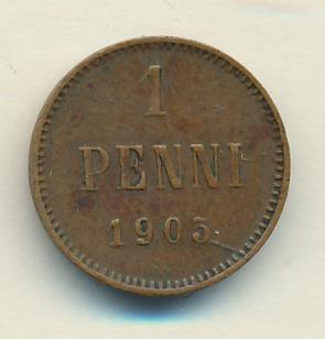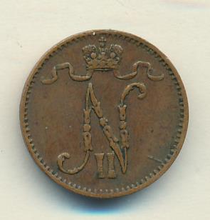 Лицевая сторона — вензель Александра II, оборотная — номинал (1 PENNIA) и дата. Нормативный вес — 1,28 грамма, гурт гладкий.