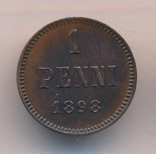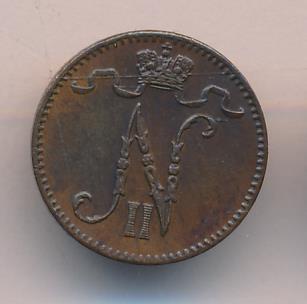 Лицевая сторона — вензель Александра II, оборотная — номинал (1 PENNIA) и дата. Нормативный вес — 1,28 грамма, гурт гладкий.