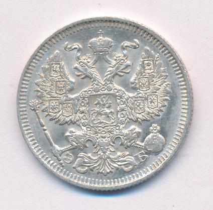 Лицевая сторона — гербовый орел, оборотная —обозначение номинала (20 копеекъ), окруженное венком из лавровой и дубовой ветвей и дата.