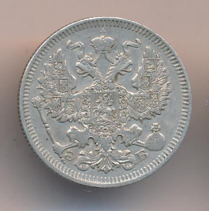 Лицевая сторона — гербовый орел, оборотная —обозначение номинала (20 копеекъ), окруженное венком из лавровой и дубовой ветвей и дата.