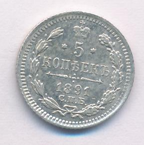 Лицевая сторона — гербовый орел, оборотная —обозначение номинала (5 копеекъ), окруженное венком из лавровой и дубовой ветвей и дата.