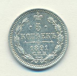 Лицевая сторона — гербовый орел, оборотная —обозначение номинала (5 копеекъ), окруженное венком из лавровой и дубовой ветвей и дата.