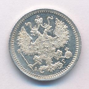 Лицевая сторона — гербовый орел, оборотная —обозначение номинала (5 копеекъ), окруженное венком из лавровой и дубовой ветвей и дата.