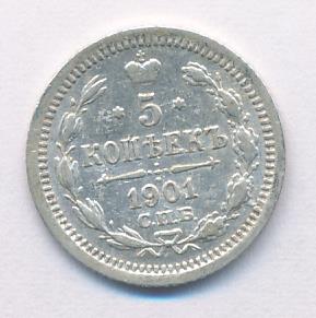 Лицевая сторона — гербовый орел, оборотная —обозначение номинала (5 копеекъ), окруженное венком из лавровой и дубовой ветвей и дата.