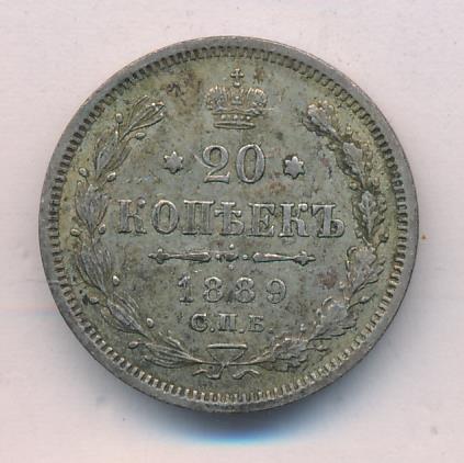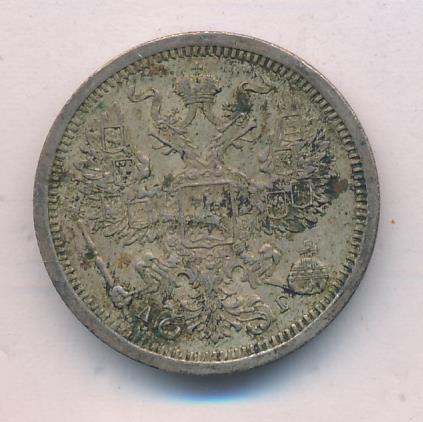 Лицевая сторона — гербовый орел, оборотная —обозначение номинала (20 копеекъ), окруженное венком из лавровой и дубовой ветвей и дата.