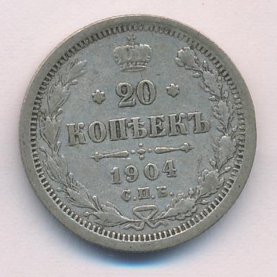 Лицевая сторона — гербовый орел, оборотная —обозначение номинала (20 копеекъ), окруженное венком из лавровой и дубовой ветвей и дата.