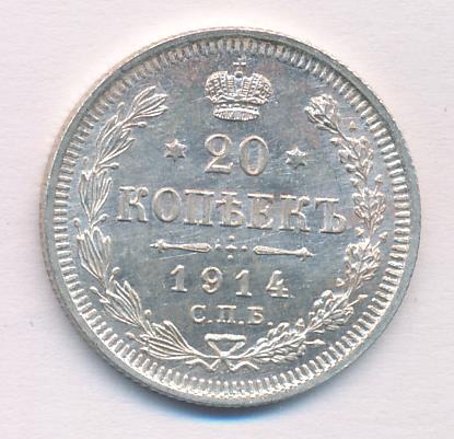 Лицевая сторона — гербовый орел, оборотная —обозначение номинала (20 копеекъ), окруженное венком из лавровой и дубовой ветвей и дата.