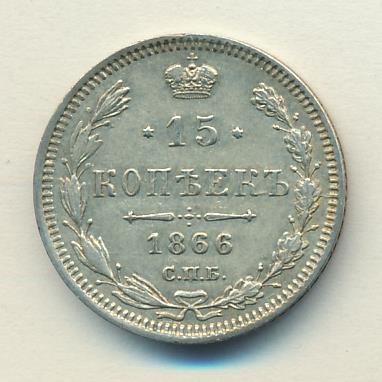 Лицевая сторона — гербовый орел, оборотная —обозначение номинала (15 копеекъ), окруженное венком из лавровой и дубовой ветвей и дата.