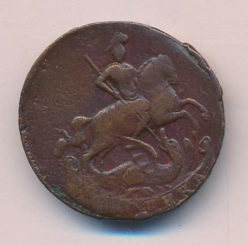 Производство ведется на московском Красном, Екатеринбургском и Сестрорецком дворах. Лицевая сторона — Георгий Победоносец и обозначение номинала (копейка) в картуше, оборотная — сложный симметричный вензель Елизаветы Петровны и дата. Нормативный вес — 10,24 грамма, гурт — сетка.