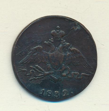 На новой серии медных монет оформление герба как на золотых (с 1817 года) и серебряных (с 1826 года), хотя еще в 1830 году было указано сделать для них орла как на платиновых. Таким образом, вышедшие в 1832 году в обращение новые медные монеты изначально имеют устаревшее оформление, а золотые и серебряные с этого же 1832 года — новое.