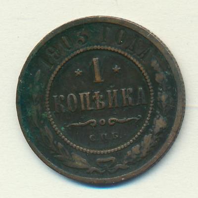 Лицевая сторона — двуглавый орел, надпись МЕДНАЯ РОССIЙСКАЯ МОНЕТА и обозначение номинала (одна копейка); оборотная — обозначение номинала (1 копейка) в бусовом ободке и дата. Нормативный вес — 3,28 грамма, гурт рубчатый.