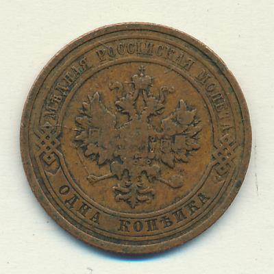 Лицевая сторона — двуглавый орел, надпись МЕДНАЯ РОССIЙСКАЯ МОНЕТА и обозначение номинала (одна копейка); оборотная — обозначение номинала (1 копейка) в бусовом ободке и дата. Нормативный вес — 3,28 грамма, гурт рубчатый.