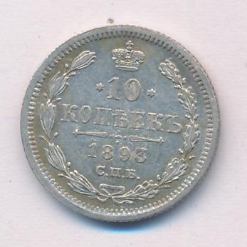 Лицевая сторона — гербовый орел, оборотная —обозначение номинала (10 копеекъ), окруженное венком из лавровой и дубовой ветвей и дата.
