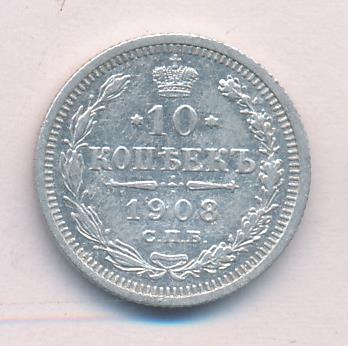 Лицевая сторона — гербовый орел, оборотная —обозначение номинала (10 копеекъ), окруженное венком из лавровой и дубовой ветвей и дата.