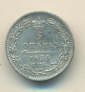 Лицевая сторона — новый гербовый орел с поднятыми крыльями, оборотная —обозначение номинала (5 копеекъ), окруженное венком из лавровой и дубовой ветвей и дата. Проба — 868, нормативный вес — 1,04 грамма.