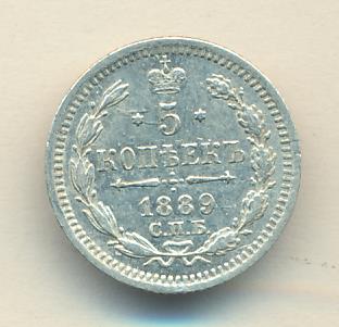 Лицевая сторона — гербовый орел, оборотная —обозначение номинала (5 копеекъ), окруженное венком из лавровой и дубовой ветвей и дата.