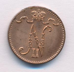 Лицевая сторона — вензель Александра II, оборотная — номинал (1 PENNIA) и дата. Нормативный вес — 1,28 грамма, гурт гладкий.